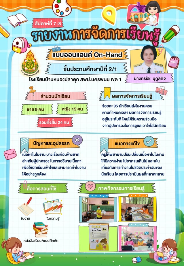 รายงานการจัดการเรียนรู้ on hand ชั้นประถมศึกษาปีที่ 2/1