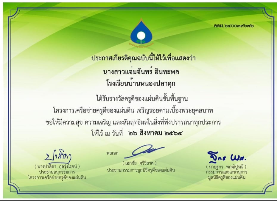 รางวัลครูดีของแผ่นดินขั้นพื้นฐาน